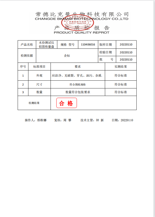 比克曼生物 水份測(cè)試儀鋁箔稱量盤 50個(gè)盒 110406016 20220110
