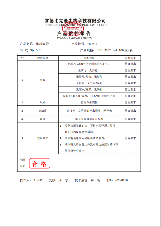130103007 塑料滴管(獨(dú)立裝) 1ml 100支袋 20220110