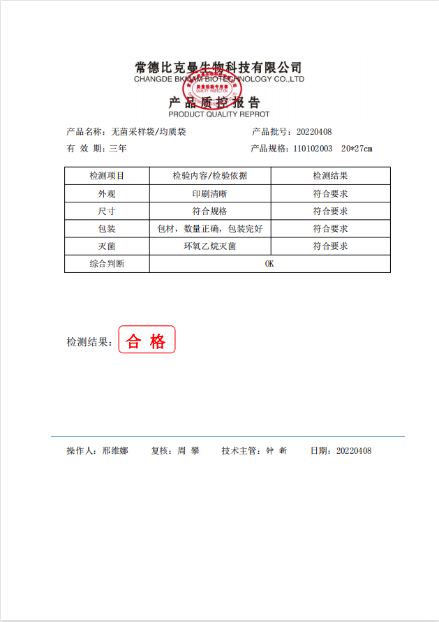立式無菌采樣袋 20x27(帶壓條) 100個裝 110102003 20220408
