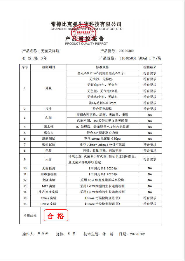 比克曼生物 無菌采樣瓶 500ml 獨立裝 110405061 20220302