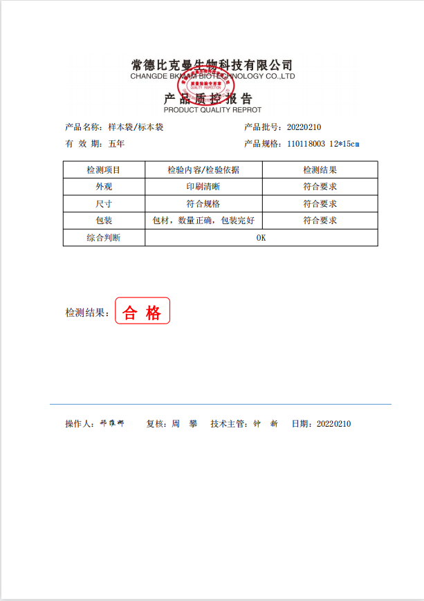 比克曼生物 樣本袋 12x15cm 100個 袋 110118003 20220210