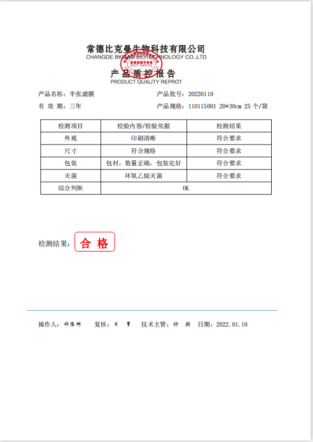 半張濾膜 (紙塑包裝) 20x30cm 25個裝 110115001 20220110