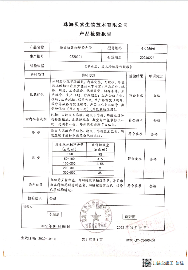 貝索 迪夫快速細(xì)胞染色液 250mlx4 BA4100 C220301