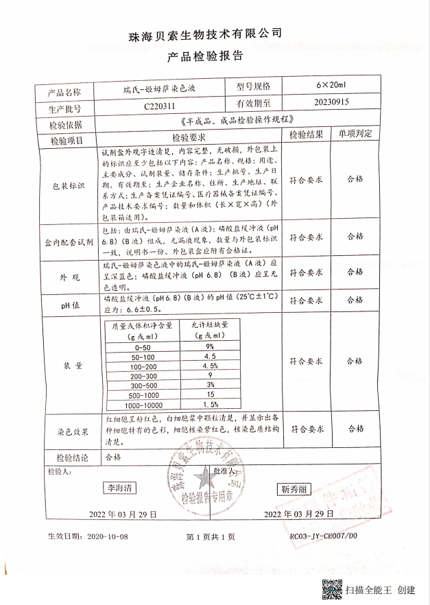 貝索 瑞氏-姬姆薩染色液 20mlx6 C220311