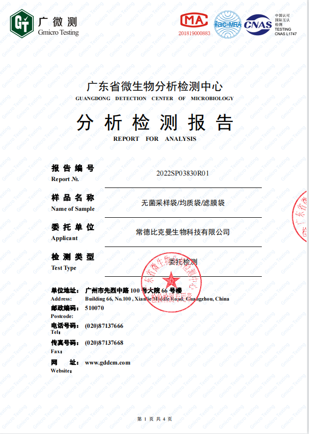 第三方報(bào)告 2022SP03830R01-無菌采樣袋&均質(zhì)袋&濾膜袋 20220408