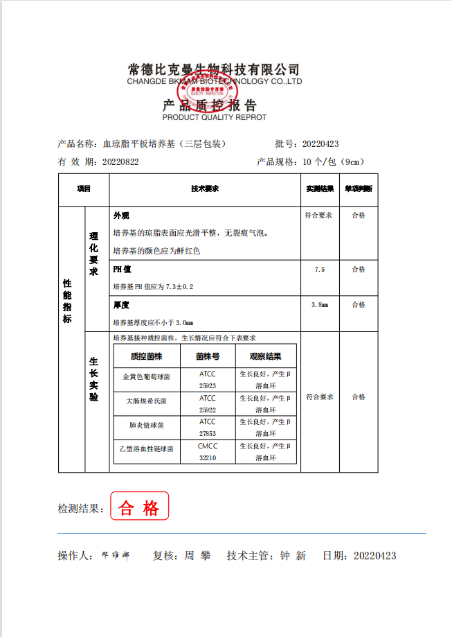 比克曼生物 血瓊脂平板培養(yǎng)基 (三層包裝)9cm 10個袋 110704011 20220423