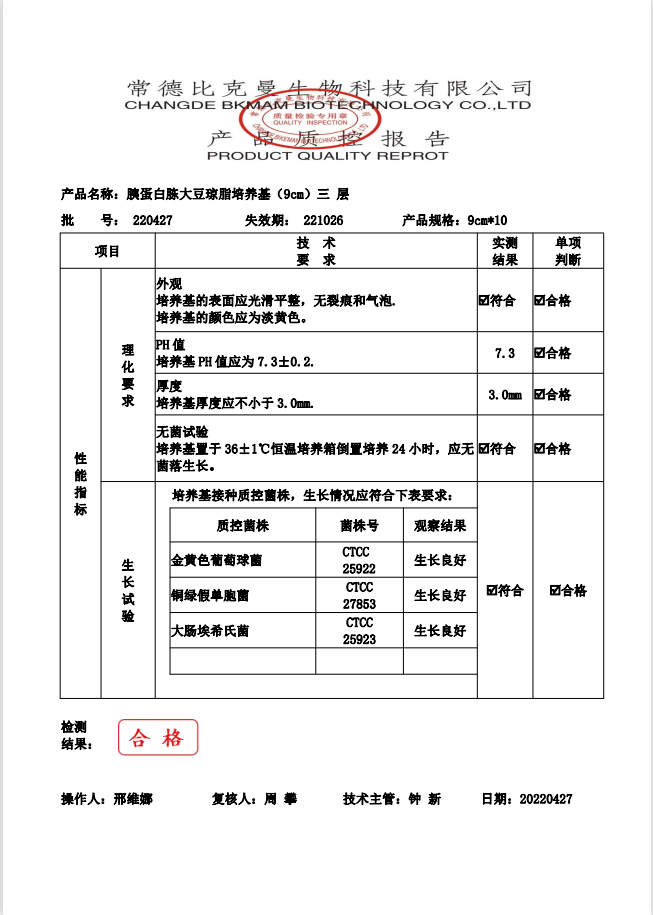 比克曼生物 胰蛋白胨大豆瓊脂(三層包裝) TSA瓊脂平板 9cm 10個(gè)袋 110704022 20220427