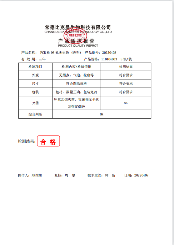 PCR板96孔無裙邊 (透明) 0.2ml 5塊袋 110404003 20220408