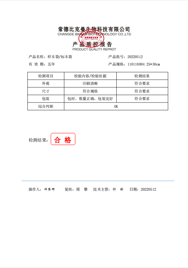 比克曼生物 樣本袋 25x30cm 100個 袋 110118004 20220512