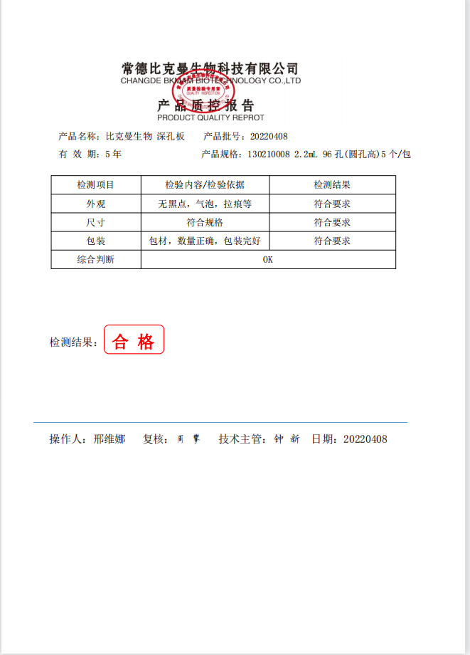 比克曼生物 深孔板 2.2mL 96孔(圓孔高) 5個包 130210008 20220408