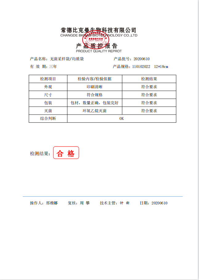 無菌采樣袋 12x18 (帶壓條) 100個裝 110102022 20200610
