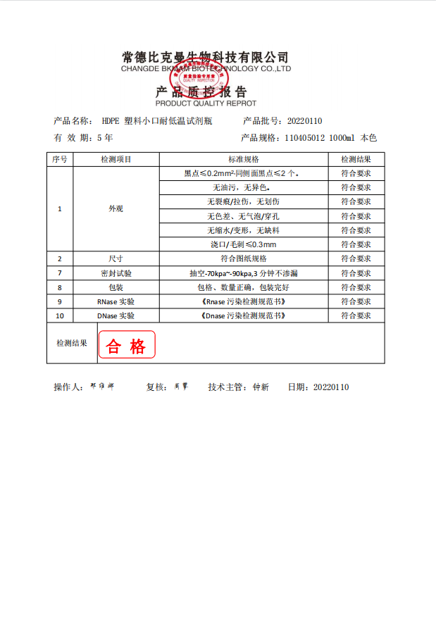 HDPE 塑料小口耐低溫試劑瓶 1000ml 本色 110405012 20220110