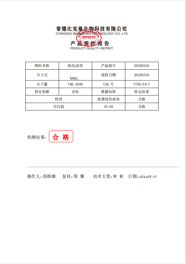 比克曼生物 納氏試劑 500ml 瓶 110702071 20220510