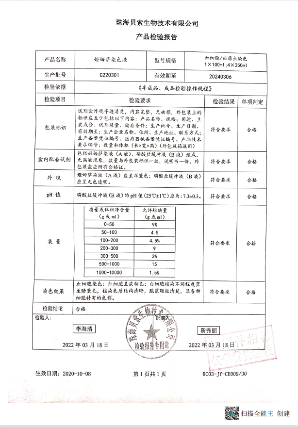 貝索 姬姆薩染色液 血細(xì)胞 瘧原蟲染色 1x100ml; 4x250ml C220301
