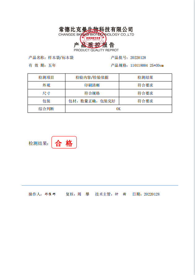 比克曼生物 樣本袋 25x30cm 100個(gè) 袋 110118004 20220128