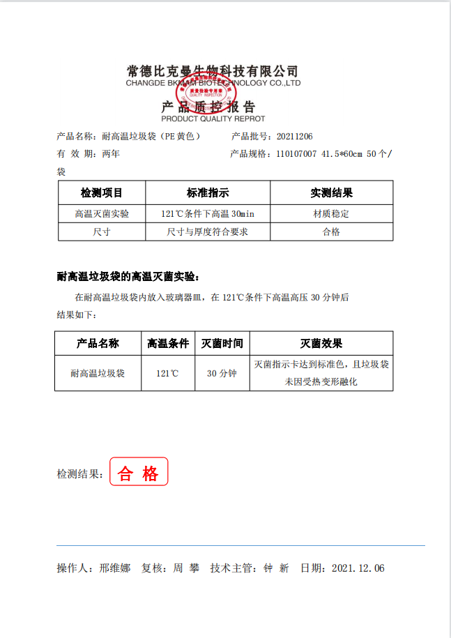 耐高溫垃圾袋 黃色 41.5x60cm (PE復(fù)合膜材質(zhì)) 50個(gè)袋 110107007 20211206